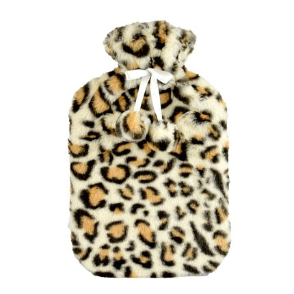 Harrogate Plush Hot Water Bottle 2 Litre Leopard Black