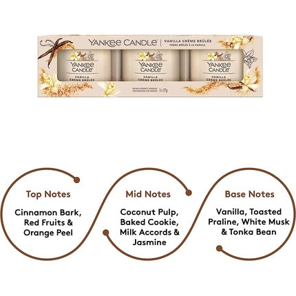 Yankee Candle Vanilla Creme Brulee 3 Filled Votive Candle Gift Set